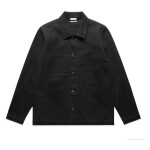 Three pocket, collared shirt jacket, unlined, ykk shank buttons to close.
