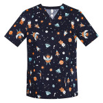 BIZ-CST148LS Womens Printed Space Party Scrub Top